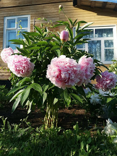 The Koningin Wilhelmina variety is known for its large, densely double flowers, colored pink with a white border, and a strong aroma. The Moonrise peony is characterized by large, semi-double flowers of ivory color.